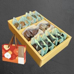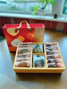 產品原料:高筋麵粉、發酵奶油、椰子油、糖粉、低筋麵粉、杏仁角、可可粉。