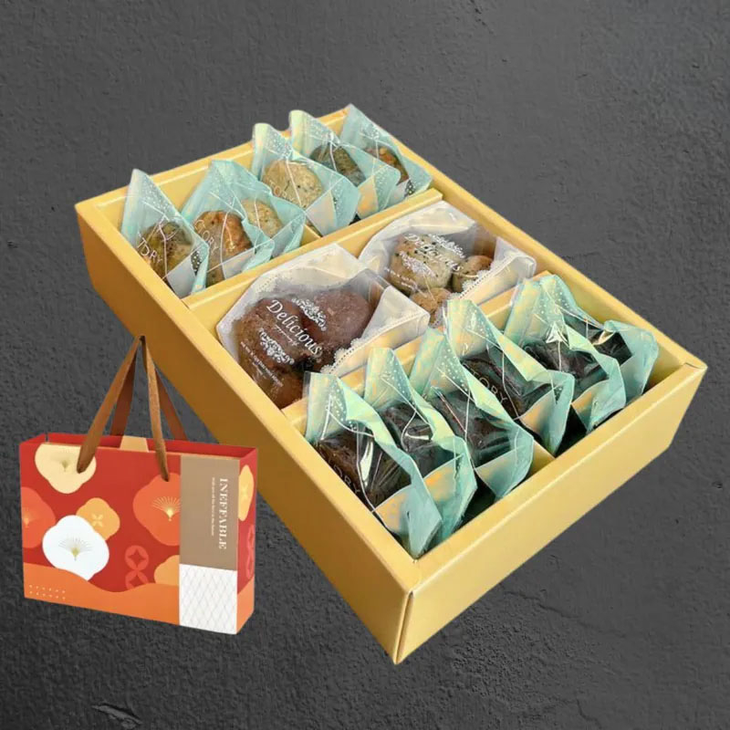 產品原料:百香果鳳梨餡、低筋麵粉、發酵奶油、糖粉、可可粉、雞蛋、全脂奶粉