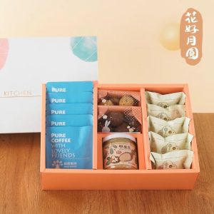 今年中秋,我們為大家設計了富足大方的大禮盒,內含低溫鮮磨的無糖堅果醬、福氣又圓滿的窯香福圓酥、香酥可口的手作餅乾球,再搭配手挑豆的咖啡掛耳包;想要輕巧高雅的,可以選擇我們今年的新式樣:小長條禮盒,裏頭配置的有來自東山窯燒龍眼的福圓酥,以及巧克力百香水果酥等等;當然同樣的,我們還是有提供貼心的客製化服務,滿足不同送禮需求。